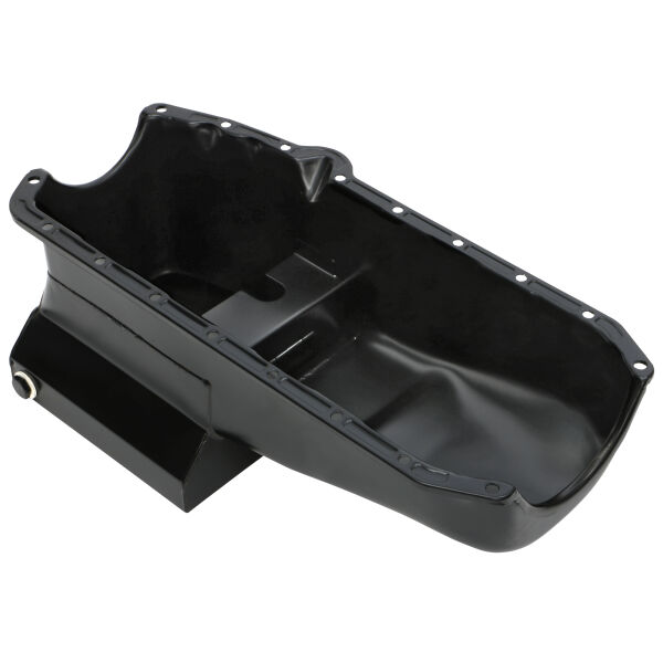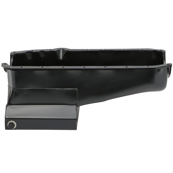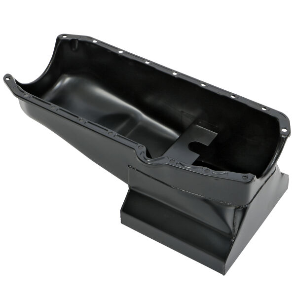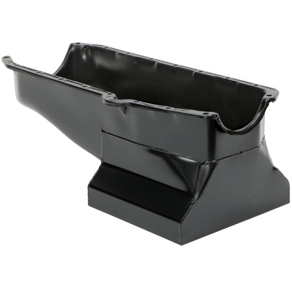 BLACK Steel, STREET and STRIP Style, Performance Engine Oil Pan With Kickouts; 1955-79 SB Chevy 283-350 (Gen 1); 7 Qt. Capacity; 8-1/4 in. Deep.