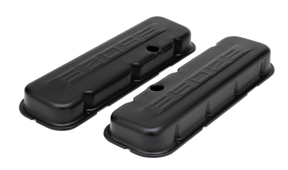 Chev. 396-454 Black Powder Coat Valve Covers w/ Holes; w/ 502 logo