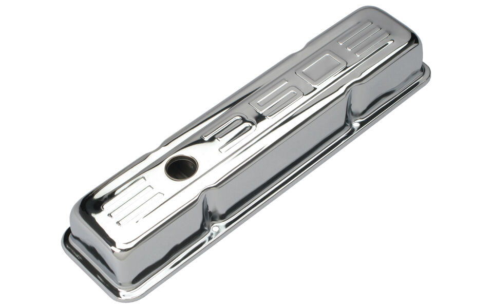 350 C.I.D. Logo Design Valve Covers; SHORT; 1958-1986 SB Chevy 350- CHROME